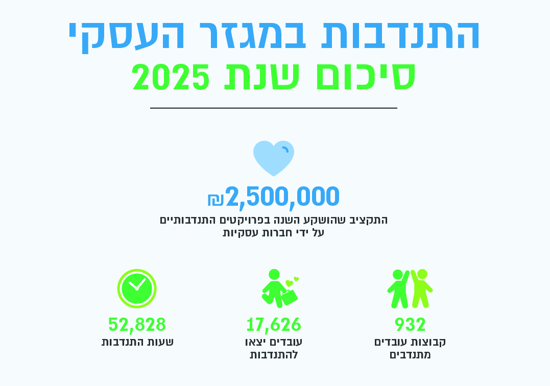 המחלקה העסקית מציעה לארגונים וחברות מסלולי התנדבות,
